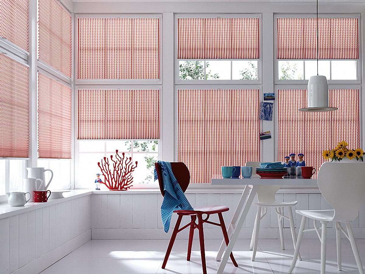 - Компактность и свободный подоконник. Плиссе имеют минимальные габариты и крепятся вплотную к стеклу. Это освобождает подоконник, который на кухне часто используется как рабочая зона или место для хранения.